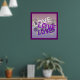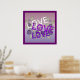 Löv och blommor i grått, grönt och violett vävs med ord "Kärlek" i samma färg för att skapa ett underbart sätt att sprida budskapet att kärlek inte kan växa utan vår hjälp.