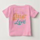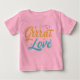 T-shirten skryter med det lekande budskapet "Grrreat Kärlek" i en multifärgad. Färg är ljust och glatt, och varje brev kan ha olika vibrerande skugga. Själva teckensnittet kan vara lekfullt och nyktert och komplettera det ljusa meddelandet.