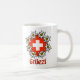 Stylized edelweiss omger en schweizisk flagga med den nedanföra vänliga schweiziska hälsningen.