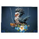 Grumpy Bird på måndag. Lustigt stiliserad fågel som ser så dyster ut att inte ens sol vågar le på det! Dess spridning är en kaotisk blandning av blått, vitt och grått, som om den hade kastat sig i en målarfärg när den har upp. Bredvid det är en kopp kaffe med texten: "Det är måndag, inte min dag." Det här kopp kan lika gärna ha ett tecken som säger: "Hjälp! Jag behöver en semester i verkligen." Det är tydligt att med en glad palett i färg och blommande blommor kommer även den grumpista fågeln att bli måndagens stjärna