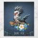 Grumpy Bird på måndag. Lustigt stiliserad fågel som ser så dyster ut att inte ens sol vågar le på det! Dess spridning är en kaotisk blandning av blått, vitt och grått, som om den hade kastat sig i en målarfärg när den har upp. Bredvid det är en kopp kaffe med texten: "Det är måndag, inte min dag." Det här kopp kan lika gärna ha ett tecken som säger: "Hjälp! Jag behöver en semester i verkligen." Det är tydligt att med en glad palett i färg och blommande blommor kommer även den grumpista fågeln att bli måndagens stjärna