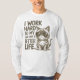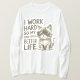 Gumlig katt med solglasögon med frasen "Jag jobbar hårt så att katten kan få ett bättre liv".