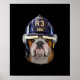 Grumpy English Bulldog Wearing Firefighter Helmet Poster