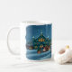 en festlig dricka mugg för den hela familjen som presenterar en snöig townsquaire på julkväll. älskvärd vinterhelgdagsouvenir med en exklusiv design vid frank glerumkonst.