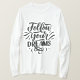 Den här bilden innehåller den inspirerande frasen "Följ dina drömmar" skriven i ett fet och konstnärligt handskrivet stil. Texten återges i svart bläck med ett något plågat struktur, ge det en vintage och äkta känsla. "drömmarna" i ord är utsmyckade med en dekorativ blomning som tillför lite elegans och stollig. Den övergripande utformningen är ren och minimalistisk, och budskapet går i centrum mot en lätt grått-bakgrund.
