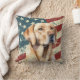 En vacker vattenfärg porträtt i en gult Labrador Retriever Hund placeras mot en grym bakgrund i USA flagga. Båda sidorna av kudden har samma bild.