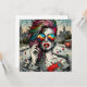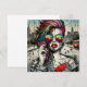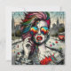 Unik konst som skildrar en vacker modern kvinna med rosa och blått hår, solglasögon som reflekterar staden, urbana bakgrunder efter apokalyptiska viber.