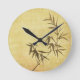 Grunge befläckt bambupappersbakgrund rund klocka