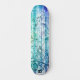 Skateboard, med grafisk grafik av ett grymt stil-blått och grönt nedfläckad med stenciler för blommigt. Anpassa för att lägga till egen text.