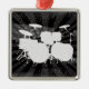Grått- kolstrålar sprängs på en rik svart bakgrund från en silhuett av en uppsättning trummor på detta ornament. Underbar för alla trummor. Finns i alternativ färg med matchande produkter.