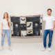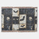 Distressad denim Halloween mönster-filt med fladdermus, döskallar och mörkens hjärtdesign på ett svart och gräddrutnät. Gothic, grunge och eerie-estetik - perfekt för pooky décor, alternativa presenter och Halloween fest stil.