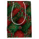 En rik grym jul-mönster med holly på en kontrollerad grönt och röd bakgrund.