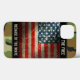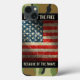 Denna patriotiska Fodral-Mate Barely Där iPad mini Retina fodral har en khaki-grönt, brun och svart stil-kamouflage-bakgrund mönster med röd, vit och blå grunge-amerikan ovanpå den med orden "Frihetens hem, på grund av modig". Tack till din favoritsoldat eller militära personal med en passande hyllning till deras tjänst. Om du behöver hjälp kan du skicka e-post till niteowlstudio@gmail.com.