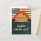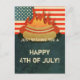 Det här vykortet har en hett hund med vild i baksidan av det, och i bakgrunden är det den amerikanska flagga. Den har ett grymt struktur till ge och ett grunt typsnitt. Färg är rött, vitt och blått.