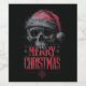 Fet och grungande grafisk design med en mycket detaljerad, handdragen skalle som på ett hotfullt sätt kröns med en nöd, röd tomtehatt. Bilden har ett tungt, texturerat och något stänkt utseende, inställt mot mörkens grått-bakgrund. Under skallen presenteras ord "GOD JUL" i framstående, stiliserad röd typografi. Den här utformningen ger ett unikt, alternativt sätt att ta sig an julhelgen.
