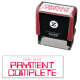 Den här enkla utformningen av gummi frimärke innehåller meddelandena "BETALNINGSKOMPLETTA" och en rad där ett betalningsdatum kan skrivas. Den kan användas för att markera att en faktura eller faktura har betalats.