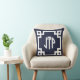 Gruvblått och vitt grekiskt Nyckel Circle Monogram Kudde