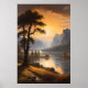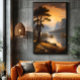 En gyllene solnedgång badar lugna dalar där urgamla träd vaktar hemligheter om dimmiga berg och spegelblanka sjöar. Ljus, lugn och naturlig magi inbjuder till evig kontemplation.