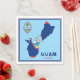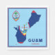 Guams nationella flagga inkorporeras i öns form och ligger vid sidan av land arm/säl. Den text som lagts till är land namn i två former, engelska och Chamorro.