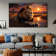 Majestisk och serene, den lejona vilar på vatten kant när solnedgången målar himmel i gyllene och röda nyanser. Scenen utstrålar styrka, royalty och besinning och fångar den afrikanska savannahns vild i dess mest sublima form.