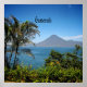 Guatemalas landskapsfoto, vulkan och sjö, rund dekal.