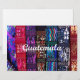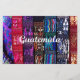 Guatemala har ett rik kulturarv. Textilmönstren som framställs av den inhemska befolkningen i Guatemala är ett exempel på detta i perfekten. De är färgstarka, vibrerande, komplexa och unika. I detta mönster fångas några av dessa guatemalanska textilformgivningar upp i ett bild, och texten "Guatemala" trycks i kursiv brev ovanpå textilformgivningen. Den vita texten över de extremt komplexa designerna skapar en intressant kontrast. Detta är perfekten för alla som har besökt detta vackra land, och det kan placeras på produkter från många och se helt fantastiskt ut.