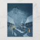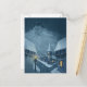jul semester vykort med exklusiv original konst av gubben vinter som besöker en romantisk liten stad på julafton. med massor av snö & festliga dekorationer.