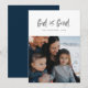 Detta enkla fotokort har det kristna budskapet "Gud är god" i en handskriven stil. Perfekt för att visa upp alla dina välsignelser under högtidsperioden, har detta vertikala kort en stor fyrkantig fotoframtoning. Baksidan är marinblå med vita snöflingor, men färgen kan justeras genom att klicka på "anpassa".
