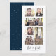 Det här julkortet med 6 foton har det kristna budskapet "Gud är god" med handskrivna utseende. Perfekt för att visa upp alla dina välsignelser under högen, har detta vertikala kort 4 fyrkantiga fotoplatser, en horisontell och en vertikal. Baksidan är i klassiskt marinblått med vita snöflingor, men färgen kan justeras genom att klicka på "anpassa".