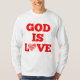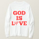 Den här långärmaden har ett fempunktsteckensnitt med rött brev som visar det bibliska ordspråket "Gud är Kärlek" med O i Kärlek som ersatts med en samling av ord Kärlek som gjorts till ett hjärta i detta bibliska citattecken. Den här långärmaden t-shirt är bekväm, avslappnad och lös montering, tillverkad av 6,0 oz, 100 % bomull före krympning, med grund och sleeve som sytts med dubbla-nål för extra tålighet har en mindre passande bild på baksidan av våra T-tröjor och bär väl på alla och alla.