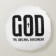 Denna runda kudde har en design som innehåller ord "Gud den originella superhjälten" i ett Harrison Rough-teckensnitt med svart brev i detta bibliska trosbaserade citat och tema. Kudden är gjord av högkvalitativa väv och våra kuddar är mjuka och skrynklingsfria. Tvätten är tvättbar i maskin.