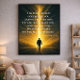 Den här kraftfulla kristna väggkonsten har en strålande bild av Gud som går framför oss - beskriven som en gudomlig ljusstyrka. Denna poster, som är centrerad kring Deuteronomy 31:8, ger uppmuntran, tro och fred under säsonger av väntan, osäkerhet och övergång. Perfekt för böneutrymmen, rum, kontor eller som en tänkbar gåva till någon som behöver lugnande besked om Guds gudomliga vägledning.