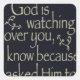 Det står "Gud tittar på dig. Jag vet för att jag bad honom."