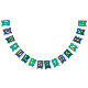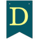 Flaggorna har omväxlande nyanser av teal, blå och violett. Bokstäverna är gula. Det finns 2 gula kors mellan orden. Budskapet är "Gud välsigna" följt av ett 6-bokstavsnamn som du bör ändra bokstav för bokstav (standard är Daniel).