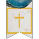 En vimpel för religiösa evenemang, rekommenderas för pojkar, med vit marmorerad bakgrund, gyllene bokstäver och kors mellan orden och blå geod-agater på de övre kanterna. Texten på vimpeln säger "Gud välsigna [Namn]" där namnet har 6 bokstäver - standard är Oliver.