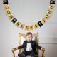En svart och guldflaggig vimpelbanner som passar för pojkars religiösa konfirmationer, första kommunioner eller dop.