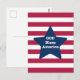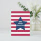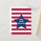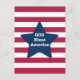 Julhälsningskort Postkort tryckt med Gud välsigne Amerika i röd, vit och blå bokstavsstil och randigt konstverk designat av TheFabricSeal på Zazzle.com #ZazzleMade TheFabricSeal©️Original.