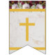 En fana med flaggor lämplig för dop, första kommunion eller religiösa konfirmationer.