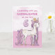 En söt rosa ponny precis som din guddotter dansar med siffran sex! Guldliknande detaljer är invävda i hennes man och svans. Perfekt kort för att önska din guddotter en lycklig 6-årsdag!
