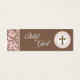 Den här baptism-/Christening-favorittaggen har Guds underordnad i ett vitt skript, på en kakaobaserad bakgrund. En rosa och brunt löv gräns och en rosa och brunt kor fullbordar denna utformning. Detta är perfekt märkre att fästa vid vår gästs tjänster som en sporre. Grafik från Docka Daisy Design.