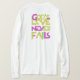 En enkel och djärv t-shirt-design med budskapet "Guds kärlek misslyckas aldrig" i ett enda, otrevligt färg. Det rena linjer och det enda färg gör att budskapet kan framstå tydligt och skapar ett starkt synligt påstående.