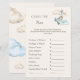 In this classic activity, guests try to guess the cost of essential baby items, with the closest total winner taking the prize! It’s a fantastic icebreaker for a baby boy shower, blending whimsical artwork with a professional and cohesive look for your party stationery. The delicate blue and neutral tones ensure it fits beautifully with your nursery-inspired décor.