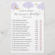 Guess Who Mommy or Daddy Baby Shower Purple Clouds and gold moon and stars game card. Matching items available in the Adore Paper Co. shop in Zazzle.