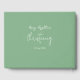 En grönt gäst bok med vit blommigt kor för doftning eller doftning. Anpassa med namn och datum och ändra döpningen till baptism om det föredras. En del av Blommigt Kor Christening Collection.