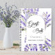 En vit snyggt som dekoreras med en båge ram av violetta lavender-blommigtar. Anpassa och lägg till ett namn och en titel/händelse. Gäst Bok är skript med snyggt-handskript.