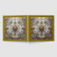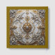 An elegant silver and gold design resembling an opulent ceiling medallion covers this guest book.
