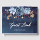 Den här bröllop-gästboken har en nave-bakgrund och en blå blommigt-motiv på den. Det är fullt anpassade och kommer med bröllop-papper som finns i denna butik.