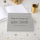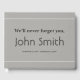 Denna minimalistiska begravning/minnessympati i gästboken innehåller budskapet "Vi kommer aldrig att glömma dig", och personlig namn och datan för födsel/död för den person som har passerat vidare. Det skulle kunna användas för att framföra kondoleanser till släktingar och vänner till någon som nyligen har avlidit.