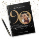 Guestbook med svart 90:e födelsedagsskript Guld El Anteckningsbok