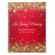 Skapa din egen gäst bok för hennes minnesstund i den här tomma anteckningsboken. Girly faux sparkly guld glitter över en röd ombre bakgrund. Du kan anpassa teckensnittet stil och storlekt efter behov. Du kan även ändra textmeddelandet "In Loving Memory".